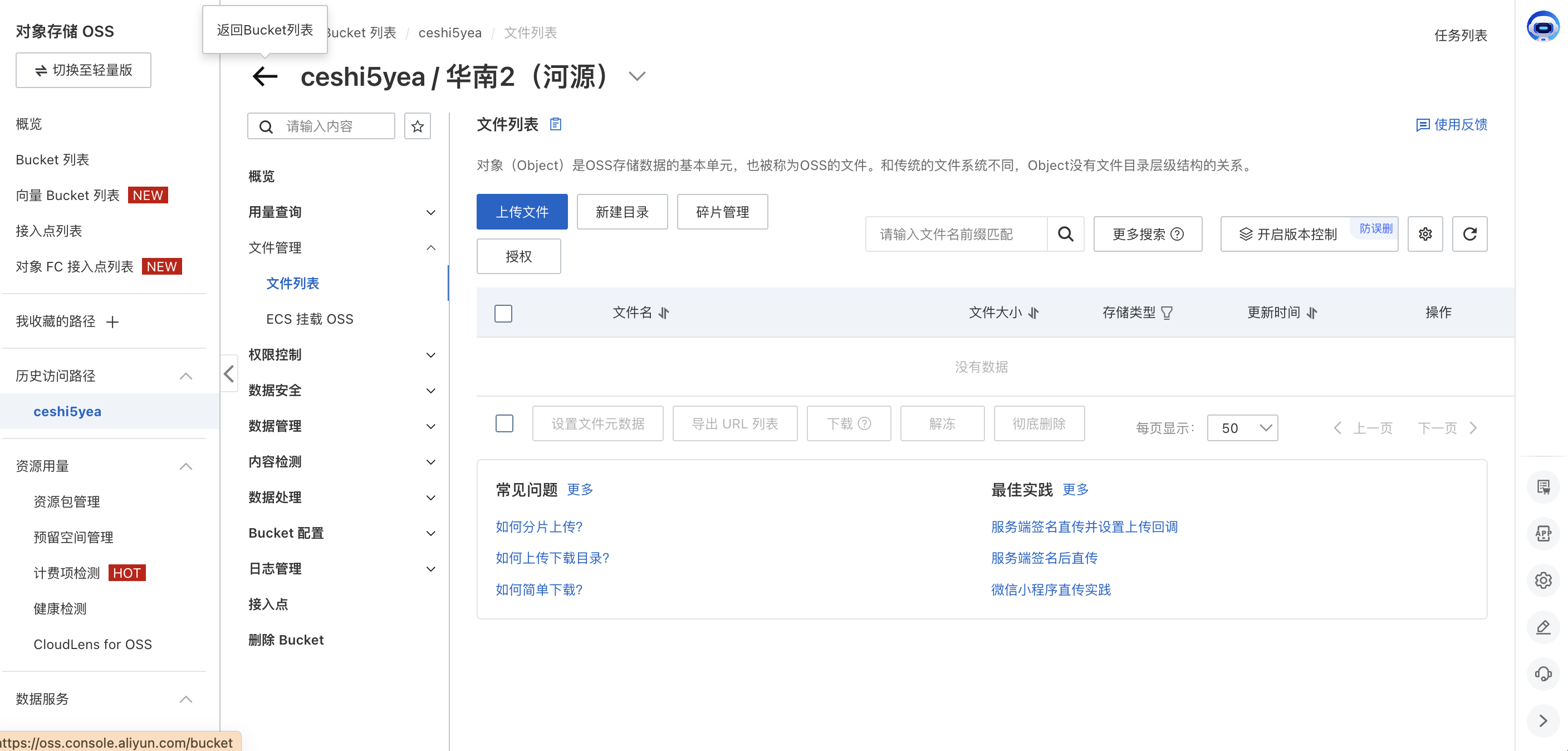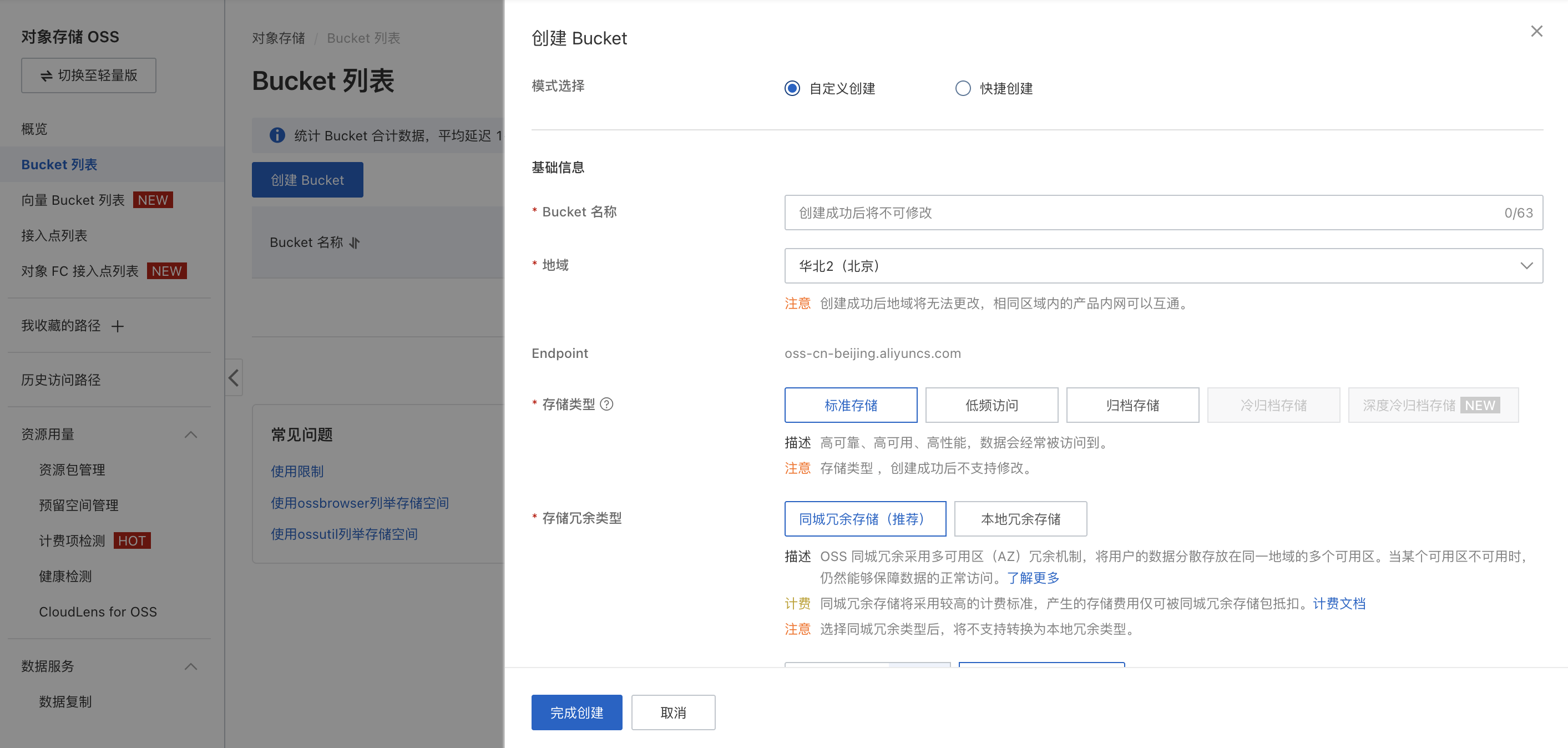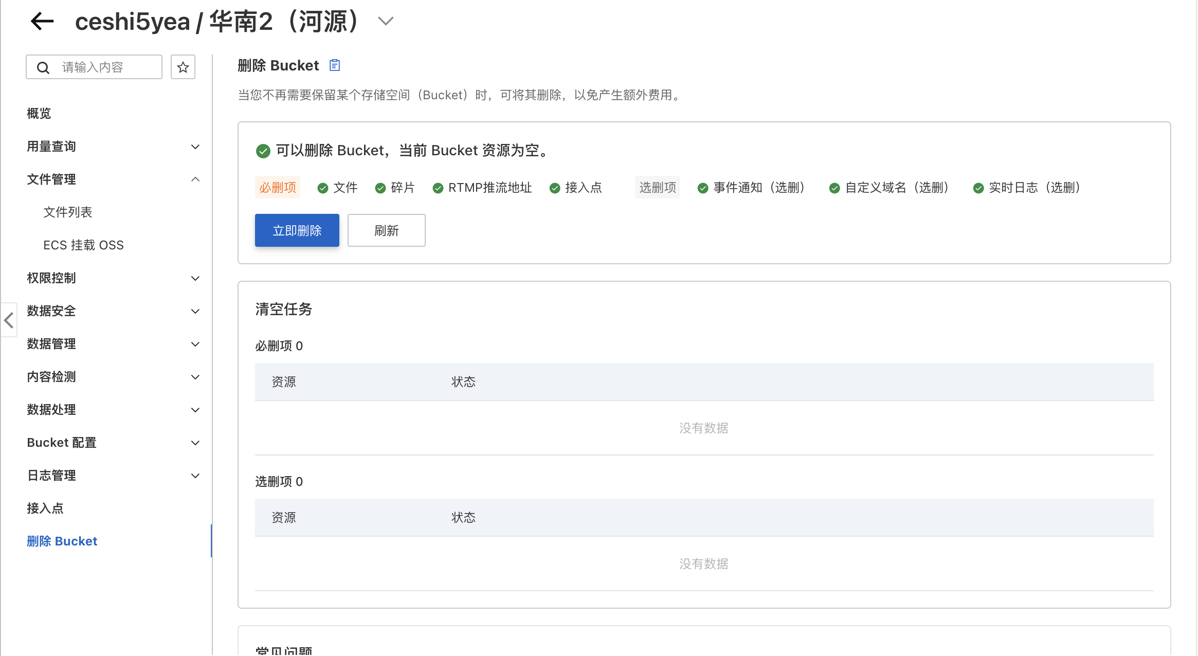 购买好后需要删除oss对象储存否则有额外计费(依旧是选择对地区) 地址