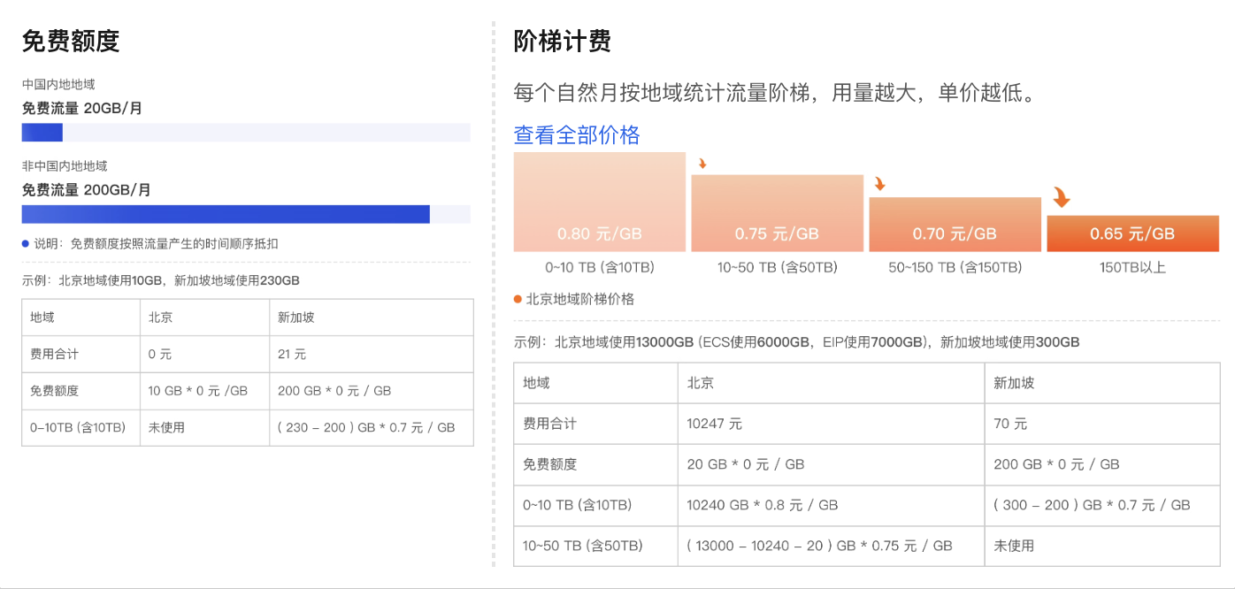 利用阿里云带宽计费模式当中的CDT公网流量免费额度以此获得仅需一个IP价格就能开通的服务器。每个月20g大陆流量以及200g非大陆流量。虽然流量少但是足够个人的学习和使用,最大的优点就是大厂稳定网络长期在线 拥有公网IP 作为家庭低需求网络中转 远程监控服务器 都是很不错的效果,毕竟带宽可以达到80 Mbps